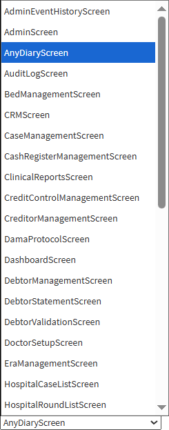 Click on the Any Diary Screen drop-down menu to select the screen you would like to add to the Custom drop-down.
