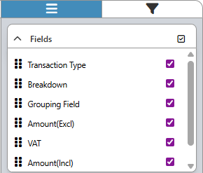 The Fields section allows you to rearrange and customise the columns by showing only the preferred ones, ensuring the report displays information in the order and detail most useful to you.
