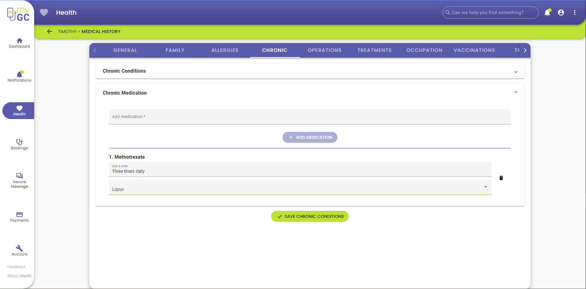 - Click/Tap on the Chronic Medication panel.