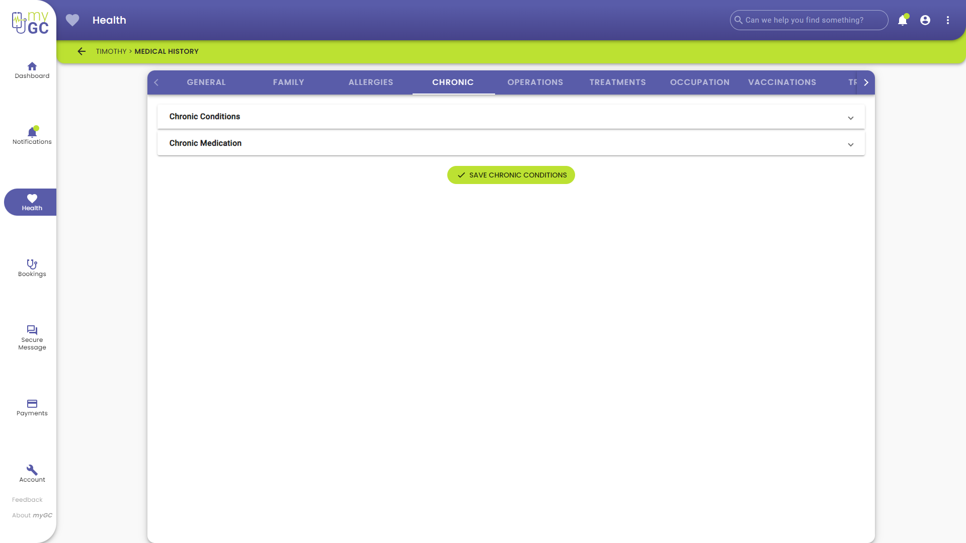 - Click/Tap on the Chronic Conditions panel.