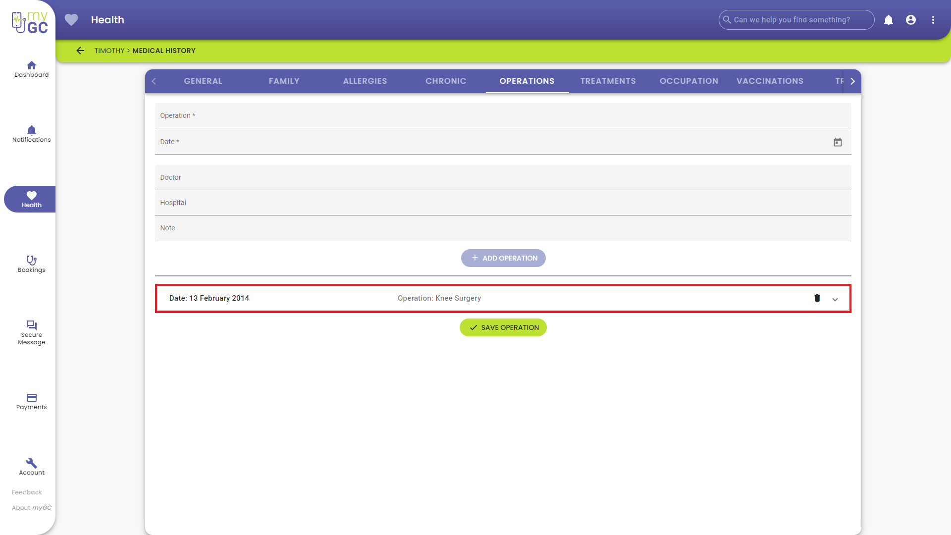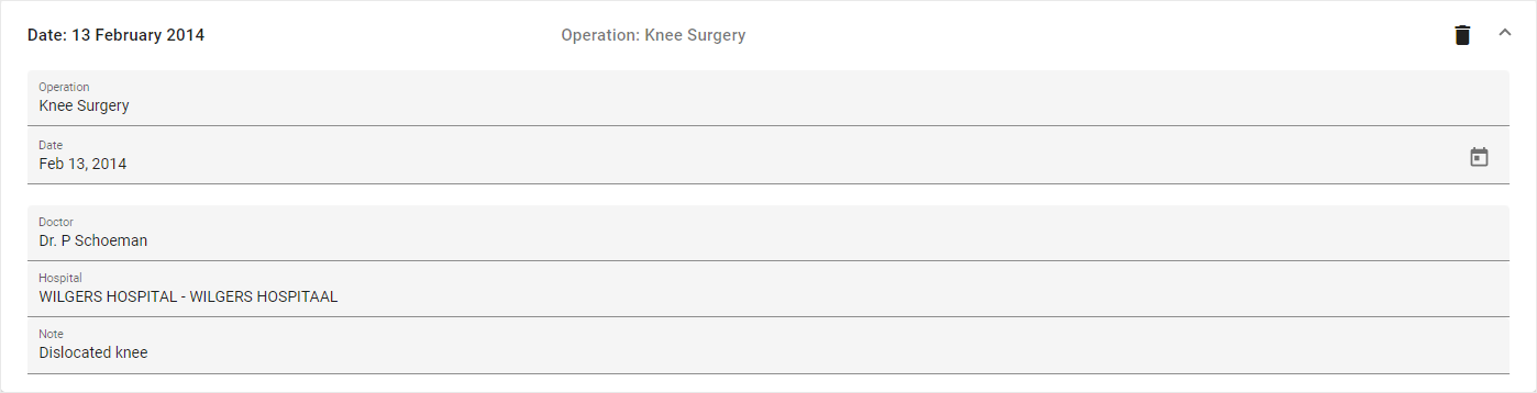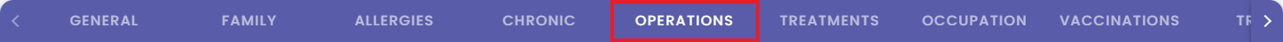 The Operations tab allows for easy access and review of past procedures, facilitating better management and transparency between the Practitioner and Patient. The Operations tab provides users with a convenient way to log and track all operations performed, ensuring accurate and comprehensive record-keeping.