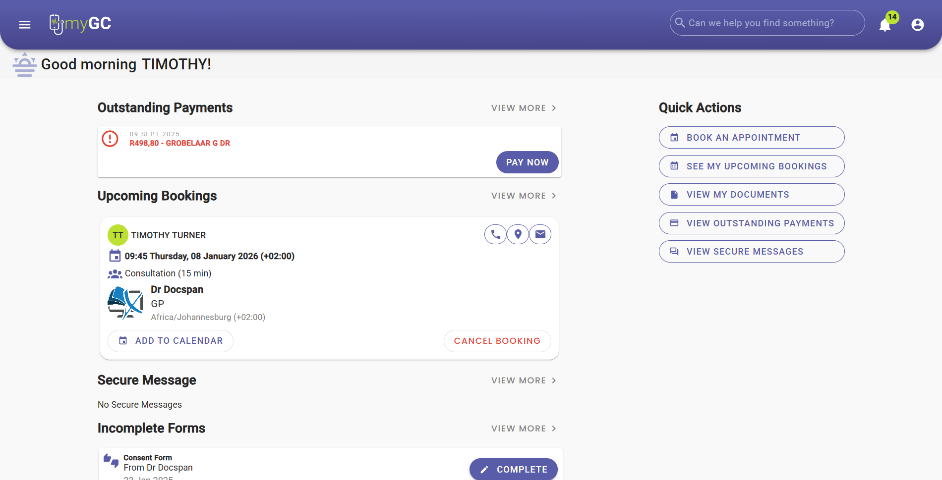 - This user manual will start on the myGC Dashboard screen.