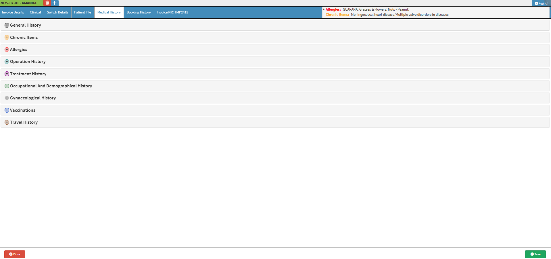 For more information on how to navigate to the Medical History screen, please refer to the user manual: Clinical Screen: Navigation and Use.