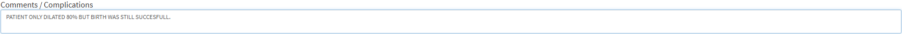 Click on the Comments/Complications field to enter any related notes to the birth or any complications.