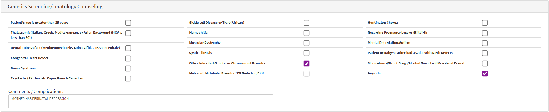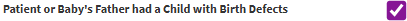 Tick the Patient or Baby’s Father had a Child with Birth Defects checkbox if there’s a history of congenital anomalies.