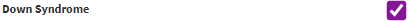 Tick the Down Syndrome checkbox to indicate any family history or risk of Down Syndrome.