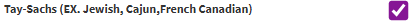 Tick the Tay-Sachs checkbox for relevant heritage (Jewish, Cajun, French Canadian) or known diagnosis.