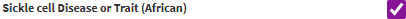 Tick the Sickle Cell Disease or Trait (African) checkbox if there's a known sickle cell trait or diagnosis, especially in African backgrounds.