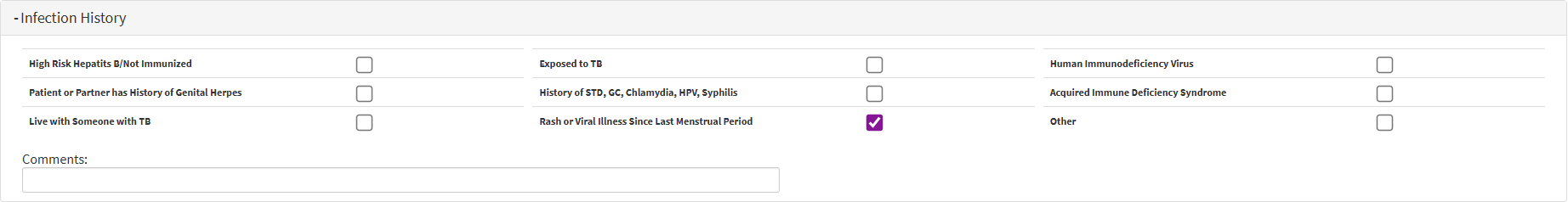 Click on the Comments text field to add any other necessary information regarding the Infection History.