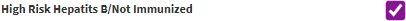 Tick the High Risk Hepatitis B / Not Immunised checkbox if the Patient has not been immunised against Hepatitis B or falls into a high-risk group.