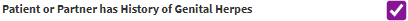 Tick the Patient or Partner has History of Genital Herpes checkbox if either the Patient or their partner has previously had genital herpes.