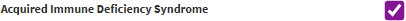 Tick the Acquired Immune Deficiency Syndrome checkbox if the Patient has been diagnosed with AIDS.