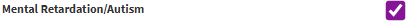 Tick the Mental Retardation / Autism checkbox to indicate a history or concern around developmental disorders.