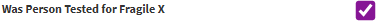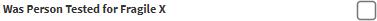 Tick the Was Person Tested for Fragile X checkbox if the person was tested for Fragile X.