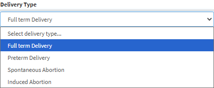 Click on the Delivery Type drop-down menu to select the type of delivery that was done.