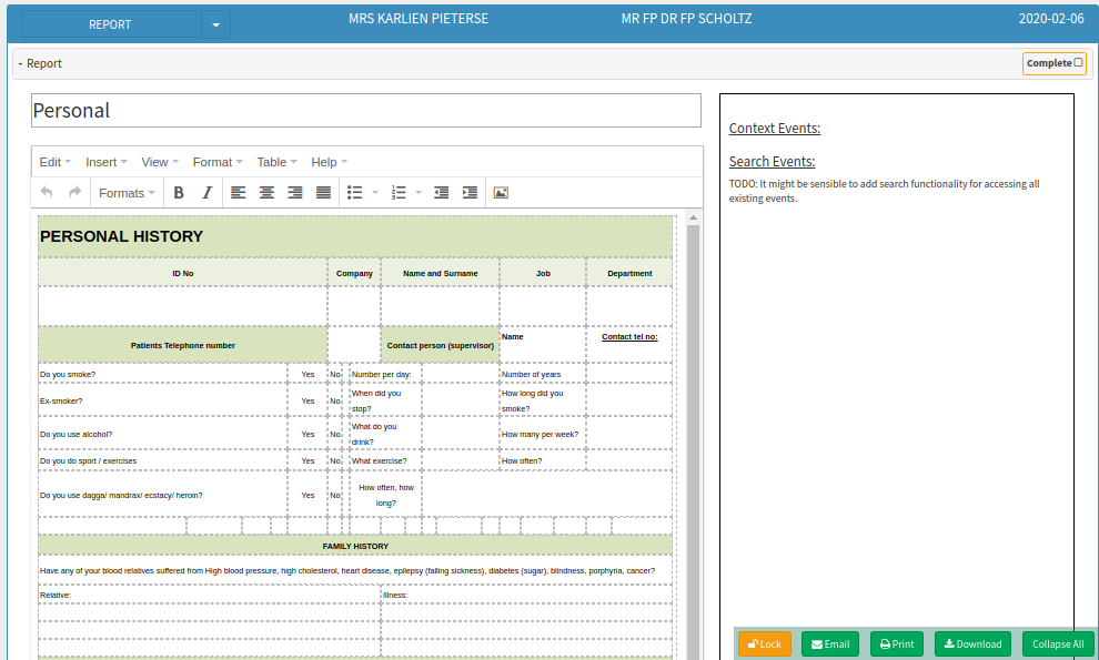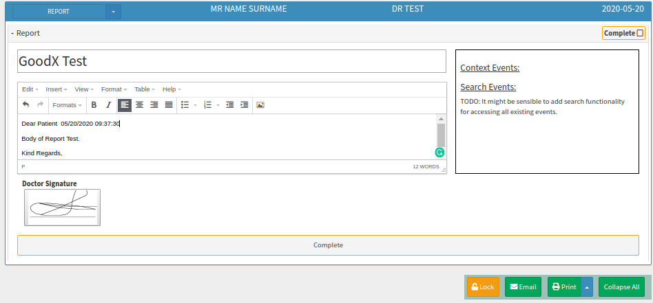 The Report template will be used to create a printable *pdf Clinical Report on the Patients file.