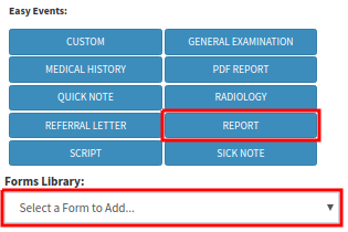 - Choose the REPORT from the easy events OR forms library on the right-hand side