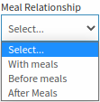 Meal Relationship: To indicate if the medication should be taken before, after or with meals.