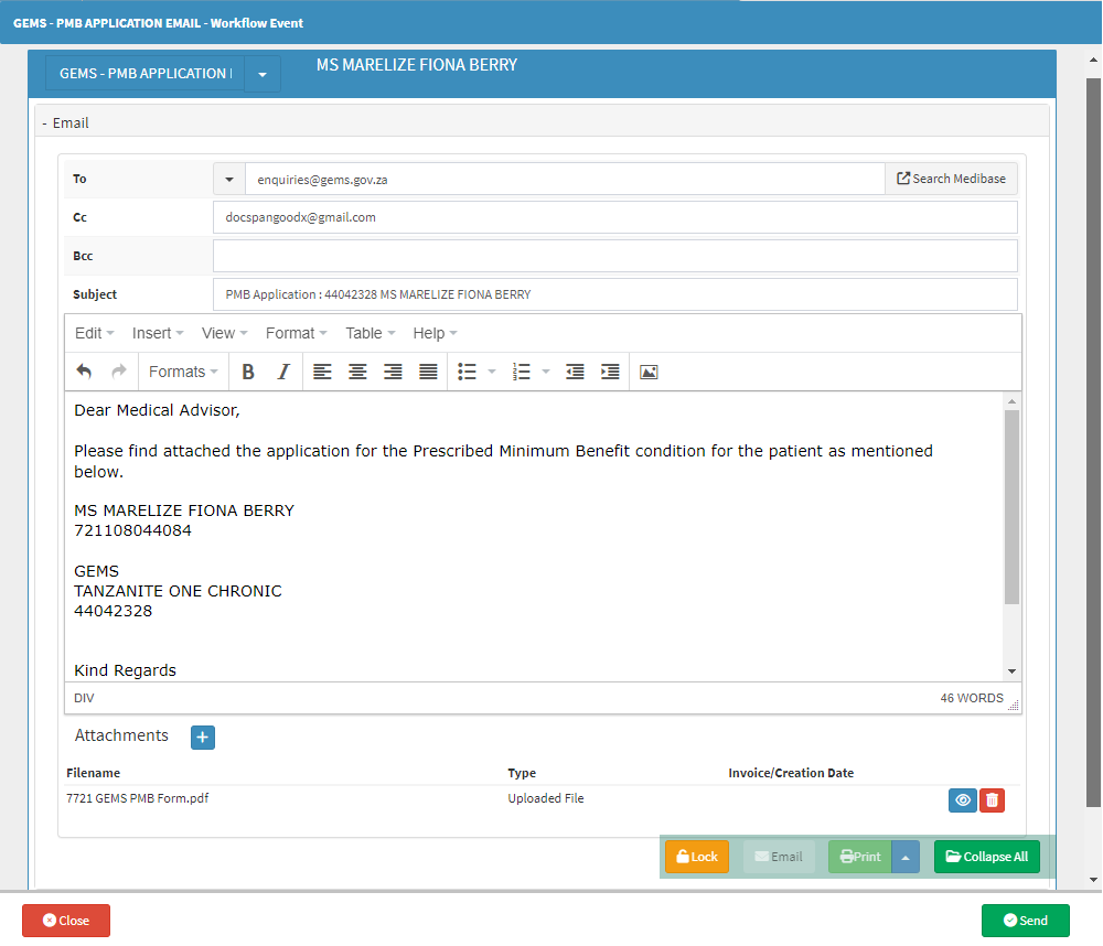 PMB Registration Workflow - Step 2: Submit Documents to Medical Aid