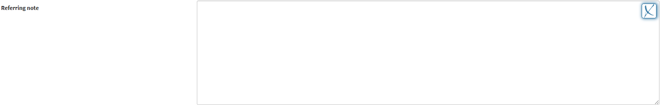 Click on the Referring Note field to enter the reason for referral and include any important details the Practitioner wants the receiving Medical Practitioner or Specialist to be aware of.
