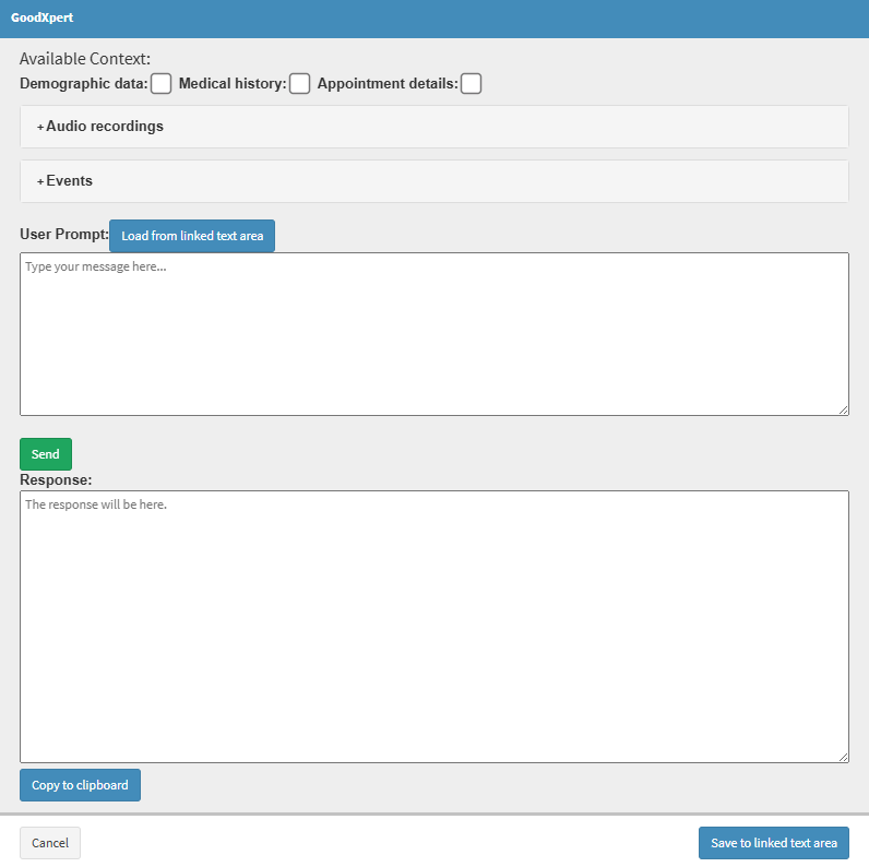 Click on the GoodXpert button to automatically generate accurate, customised notes.