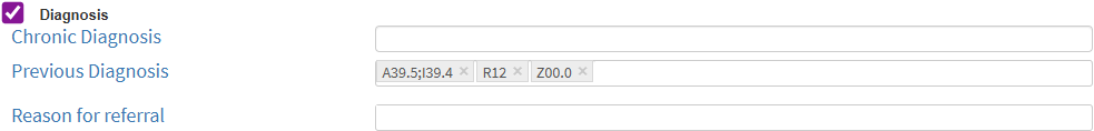 Tick the Diagnosis checkbox to include the identification of the Patient’s condition based on symptoms, allowing the Referring Practitioner to communicate the suspected diagnosis to the referred Practitioner.