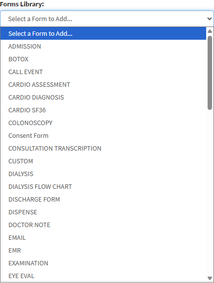 Click on the Forms Library drop-down on the Clinical sidebar.