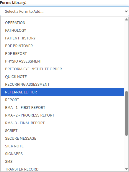 Click on the Referral Letter form option.