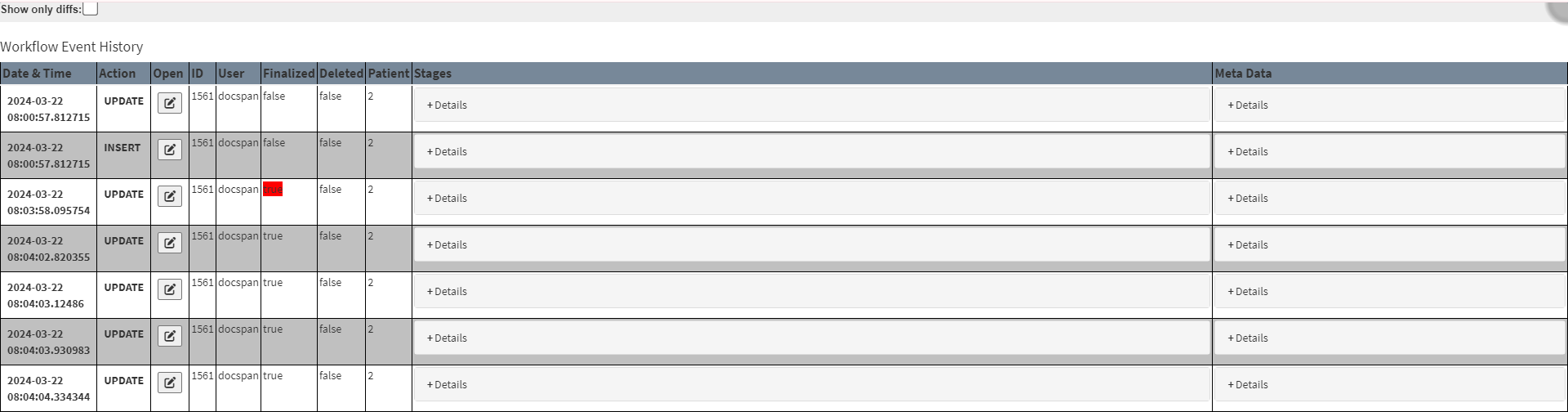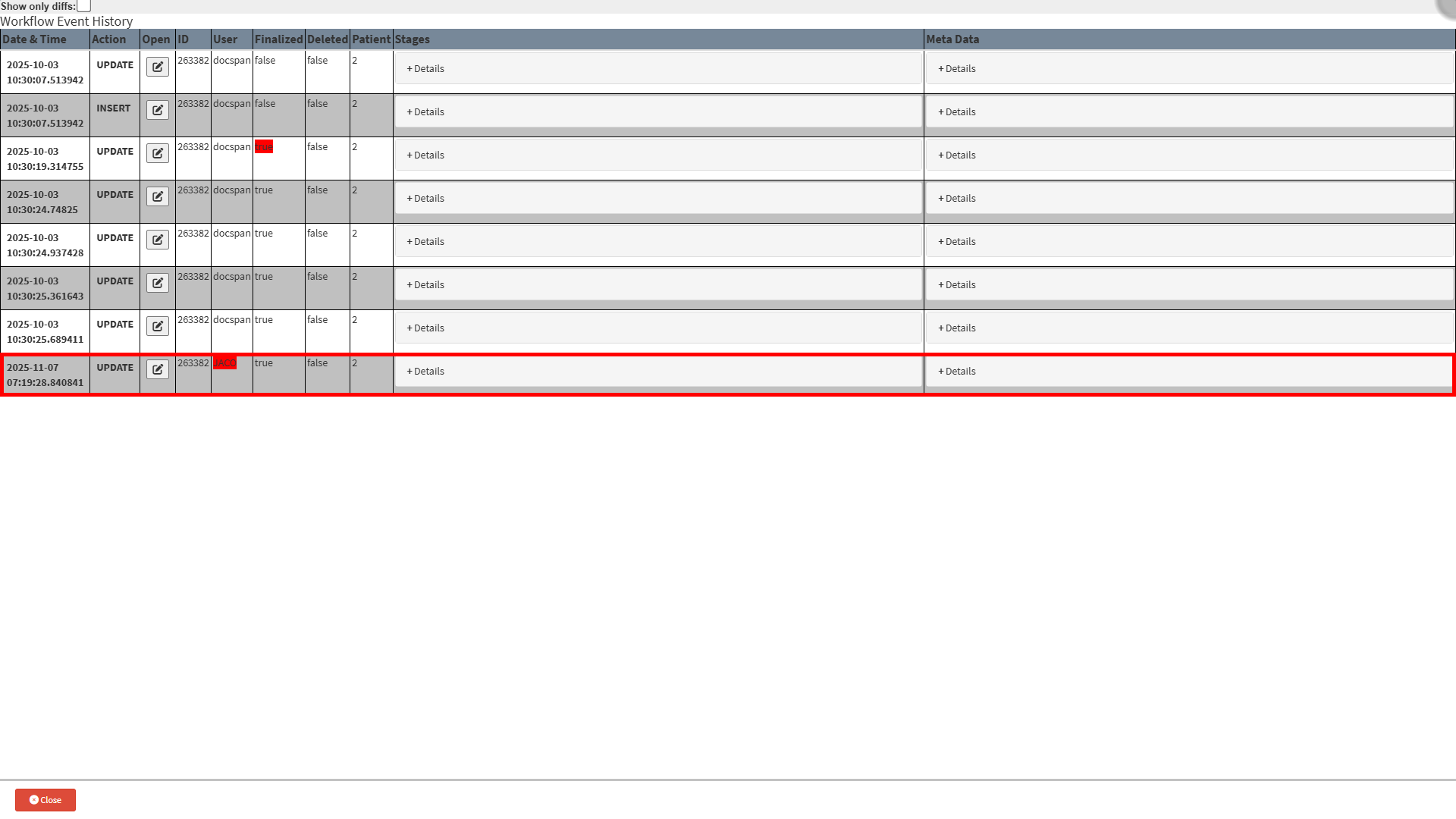 This user manual will start on the Workflow Event History screen.
