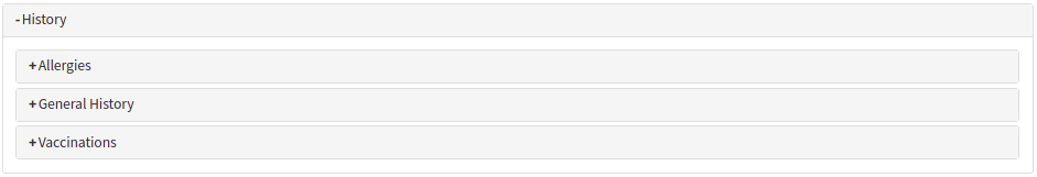 - Click on the History panel to expand the History of the Patient.