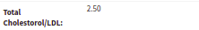 - Total Cholesterol / LDL: The Total Chol level, divided by the LDL level. The Total Cholesterol / LDL level is automatically calculated by the system.