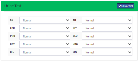 - The Urine Test panel will turn green to indicate that the results are All Normal.