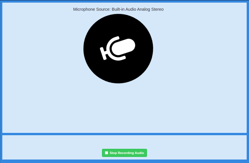 A large MicrophoneIcon will appear which indicates that the recording has started and the user is able to speak.