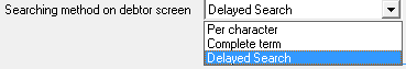 - Searching Method on debtor screen (drop-down list):