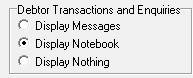 - Display Notebook: Displays a pop-up screen with the Notebook of the specific Debtor