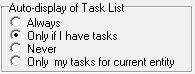 - Auto-Display of task list: By selecting one of these options it will determine when the task list will display automatically once you log in