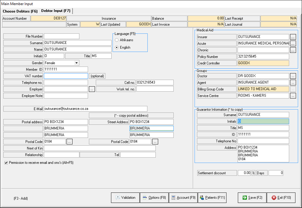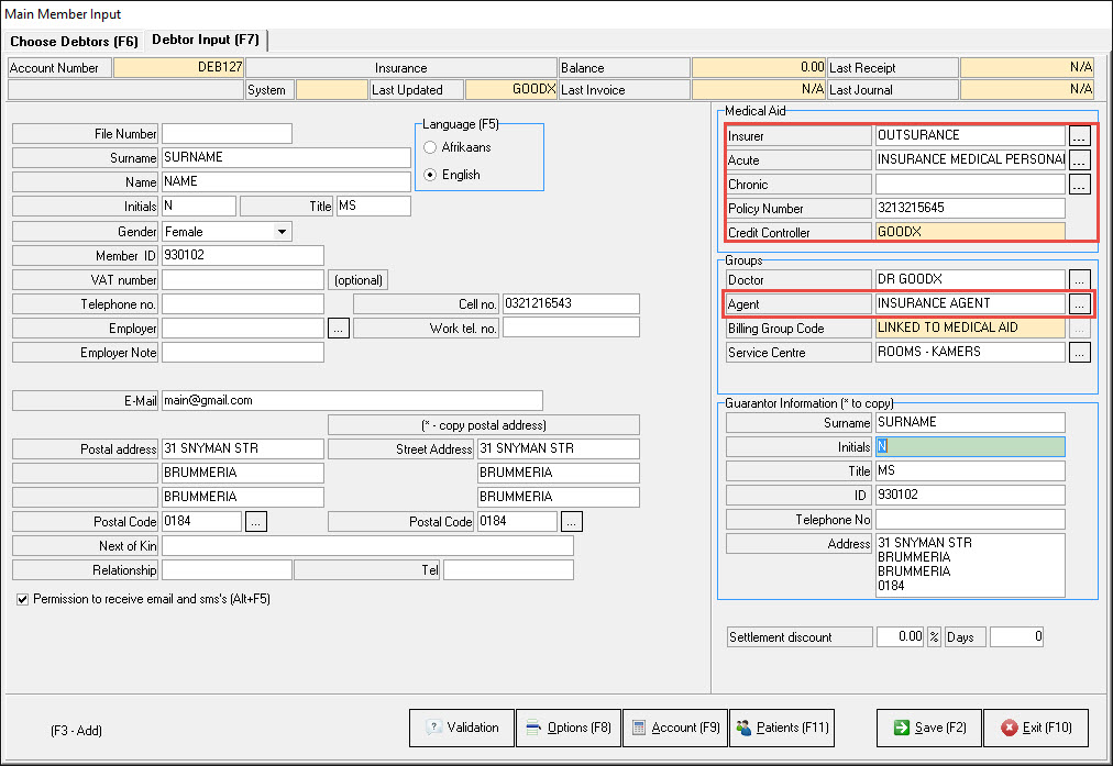 - Med debs >> Admittance >> Debtor Input >> Add the following in the E-mail field: