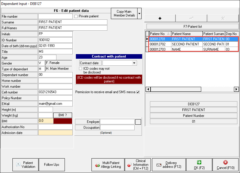 - All of the patients can then be added to one insurance debtor. You can add up to a maximum of 99 patients to one debtor.