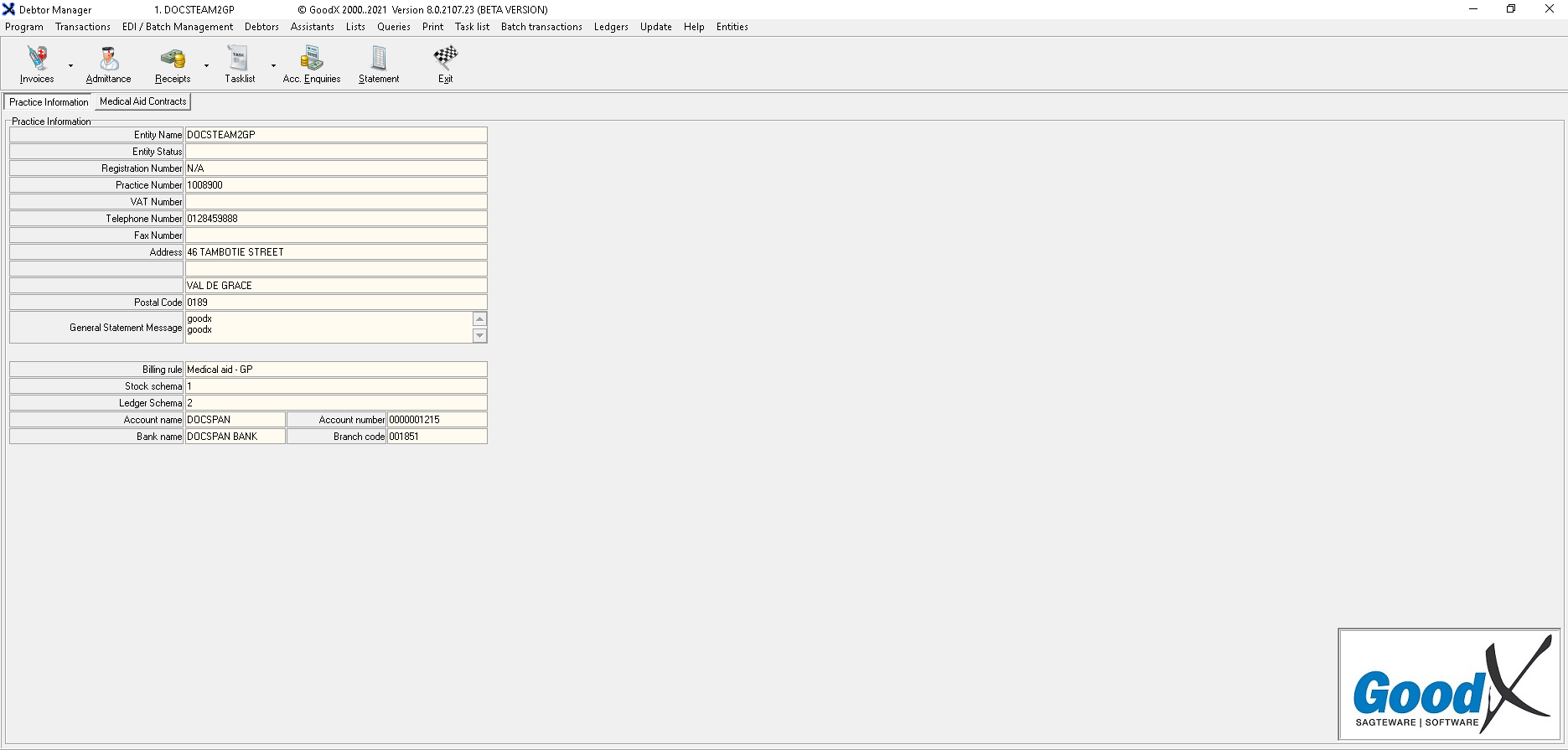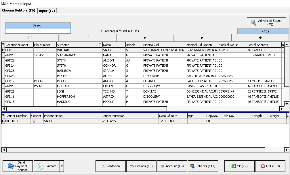 - In the Search field, search for the correct Debtor by Name, Surname, ID, Medical Aid number, Debtor Account Number, File Number or Address.