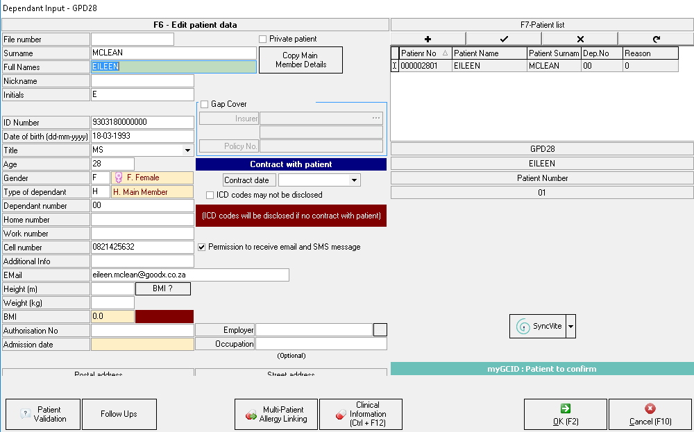 - Click on the OK (F2) button to Save the new Dependant data.