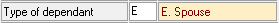 - The Type of Dependant will display as follow on the Dependant Input screen.