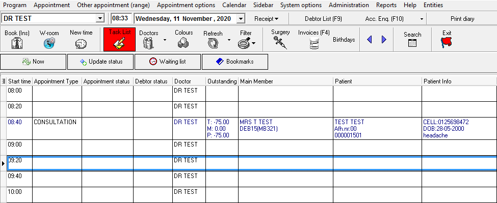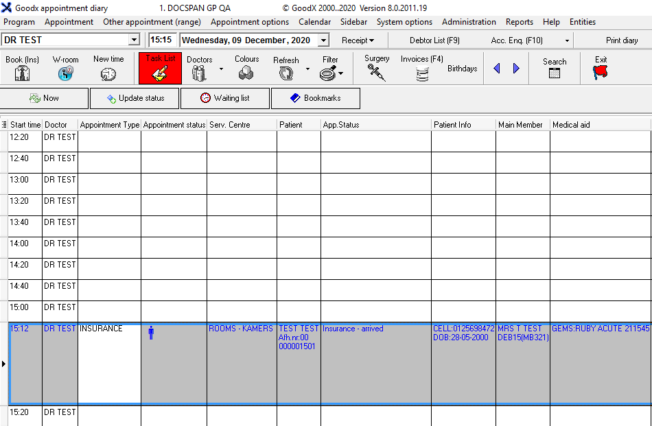 The appointment type Insurance examination: Walk-In is used to create an insurance examination on an existing patient with an electronic file at the practice but does not have an appointment and walks-in to the practice asking for assistance. The insurance booking allows you to add the insurance form reference number and necessary information the company needs for their documentation.