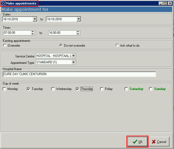 NOTE: Make sure that the Existing Appointments tick is always on "DO NOT OVERWRITE".