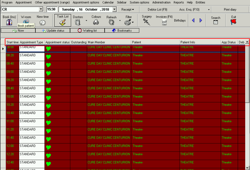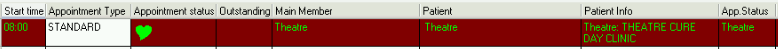On the Diary screen, on the Task bar click on Other Appointment (Range) and select "Theatre".