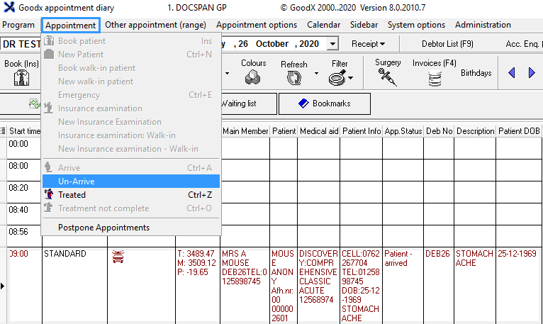 This function can be used when an appointment was marked as Arrived by accident and the patient is not at the practice yet.