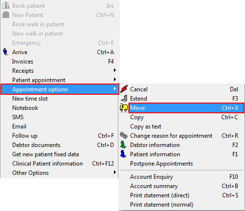 Purpose: If a patient phones in to move his appointment to another day or time, you use the move appointment function to save time and prevent human error in making a new booking. You can see in the log from when the appointment was moved and