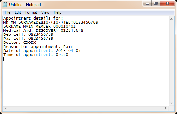 Purpose: All information with regards to an appointment can be copied and pasted into any text file.