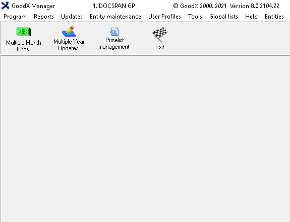 Click on Exit on the GoodX Price Updating Tool to close the screen and return to the GoodX Manage main screen.