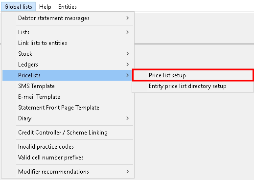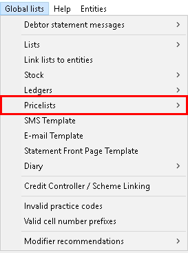 Click on Pricelists set up on the second sub-menu.