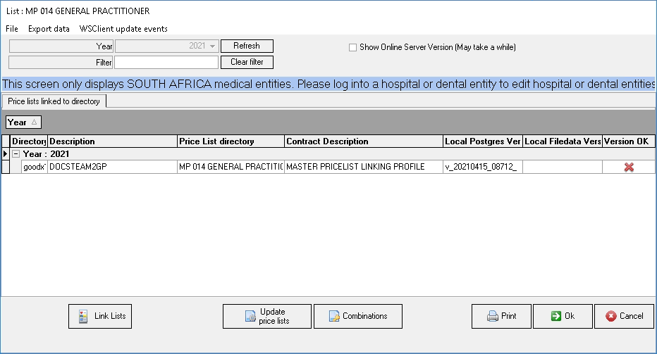 Click on No to cancel the request. The user will be reverted to the Procedure Pricelist screen.